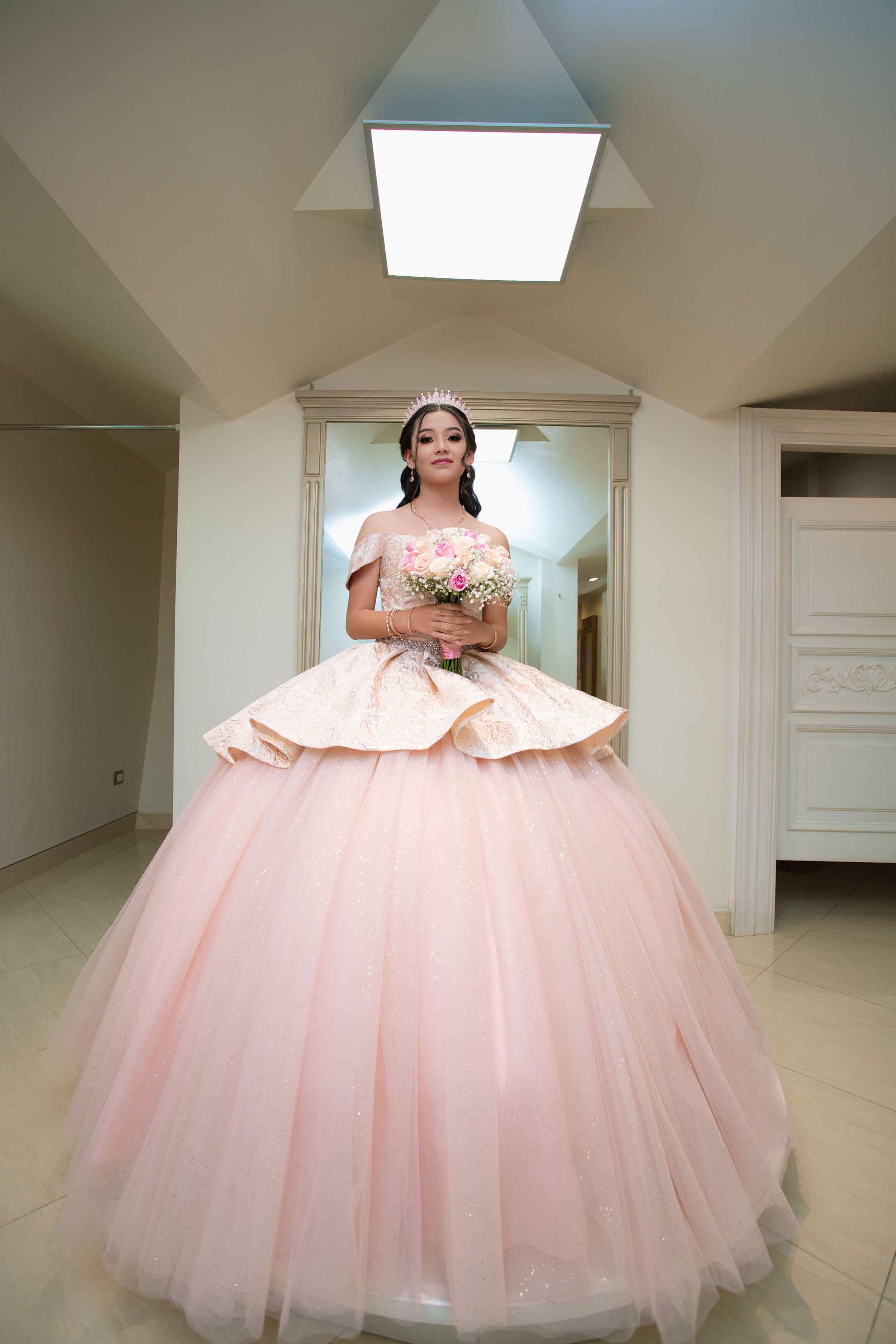 El día comenzó temprano con la cobertura exclusiva de la puesta del vestido en la prestigiosa tienda Imagen Novias. Lizeth, radiante eligió el vestido perfecto para esta ocasión única.